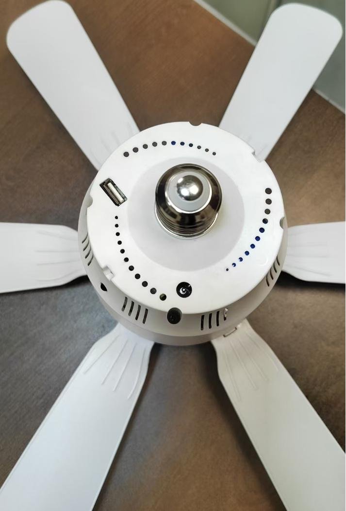 20″ solar ceiling fan with light ,E27 head, 6 ABS blades, 6 speeds, pure copper variable-frequency DC motor with 12W, 12W for illumination power, with remote control and wall control. CCT: 3000K–6500K